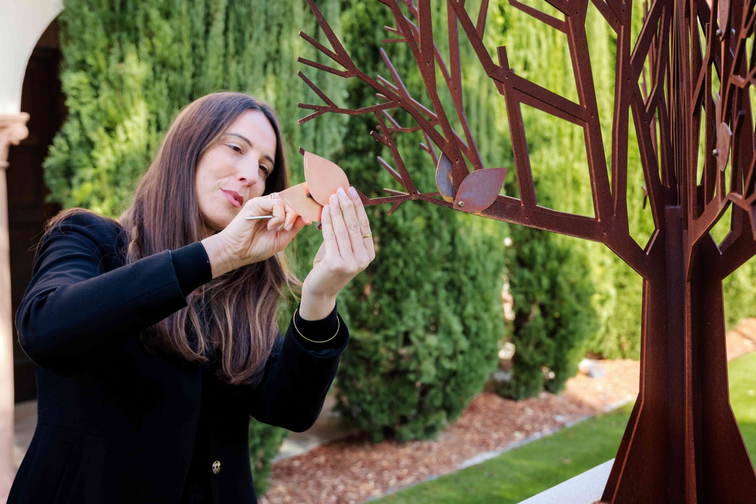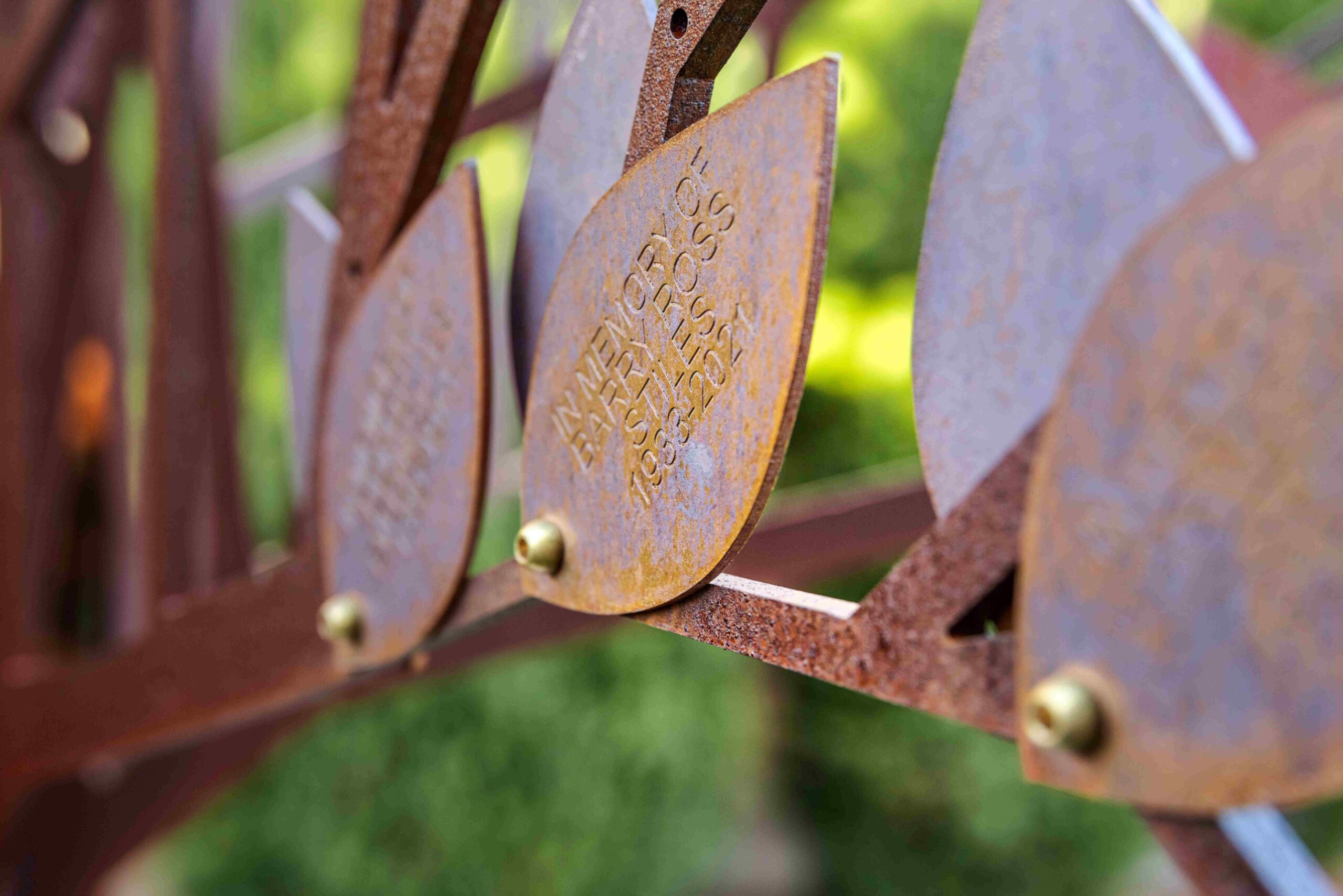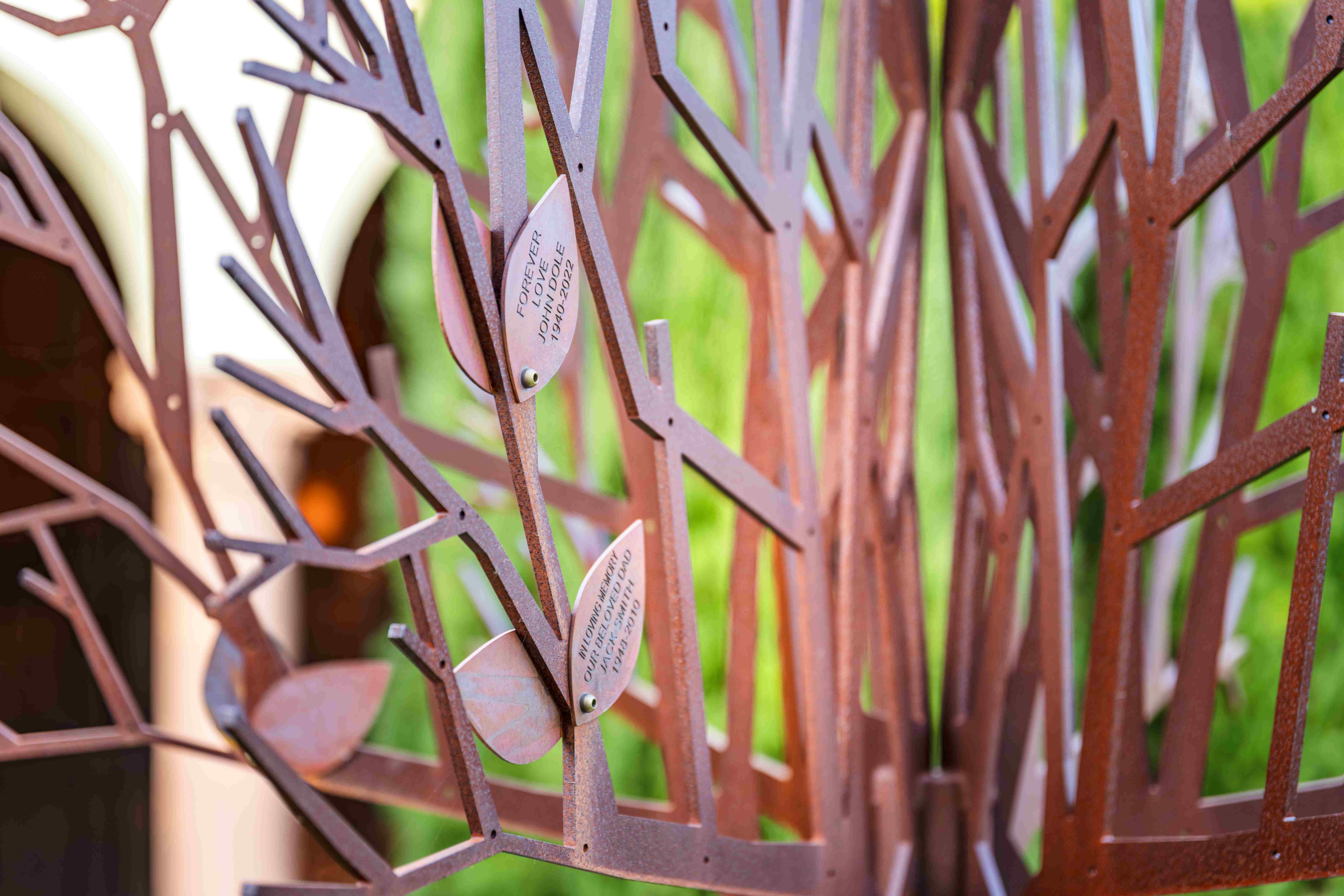 Names, dates and messages are engraved on a leaf (copper or colour coated to your preference) and fixed permanently on the memorial tree. Engraving can be done in-house or outsourced.